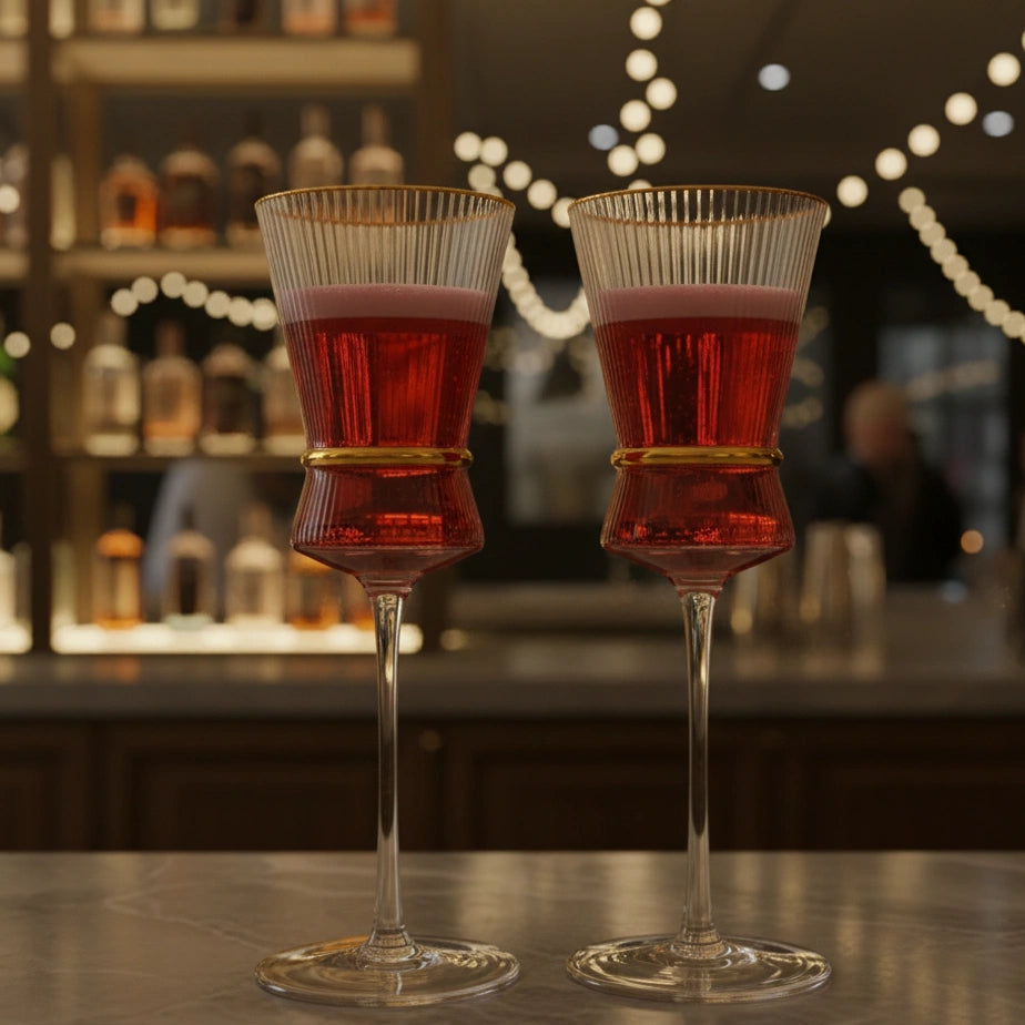 Add a touch of modern luxury to your table with this sophisticated Set of 4 Slanted Rim Wine Glasses. The glasses feature a unique asymmetrical, slanted bowl rim and elegant stem, merging contemporary design with classic form. With a generous 430 ML capacity, this size is ideal for fully aerating and serving red wines or large pours of white wine. The delicate gold accents elevate this set from everyday glassware to special occasion stemware. The glasses feature perfectly transparent Clear glass, accented by subtle Gold-tone banding around the rim and bowl.