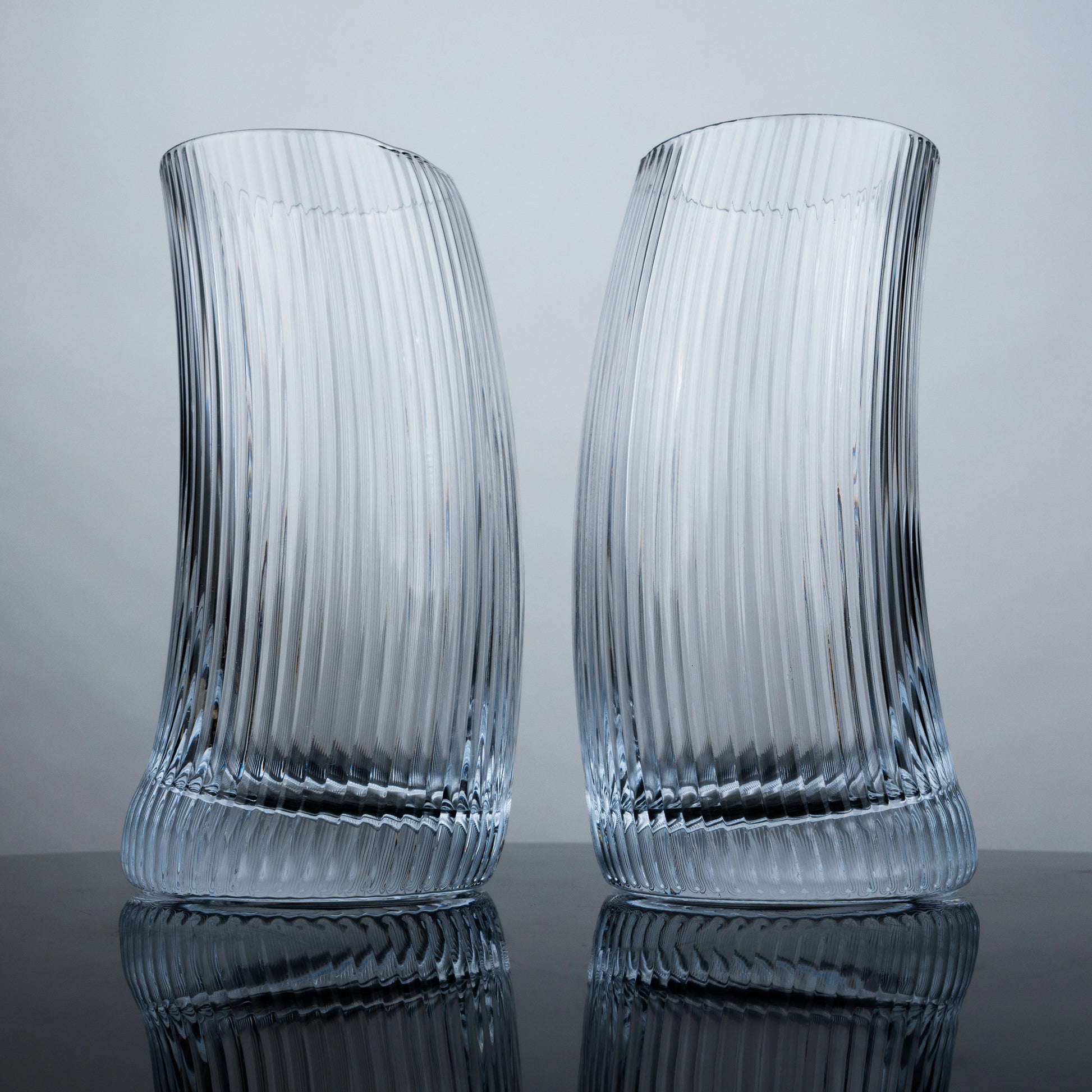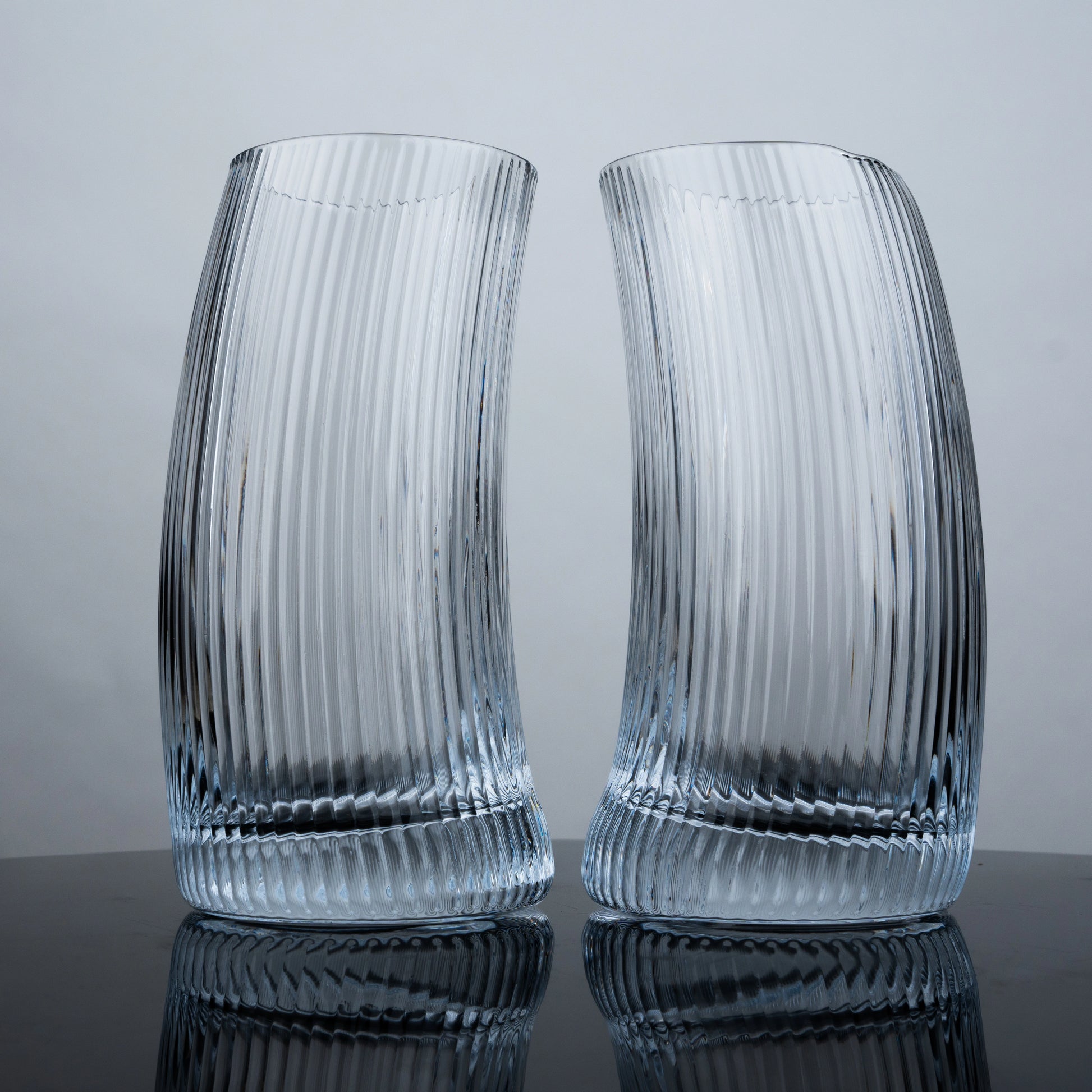 Clear Ribbed Highball Glasses - Set of 4