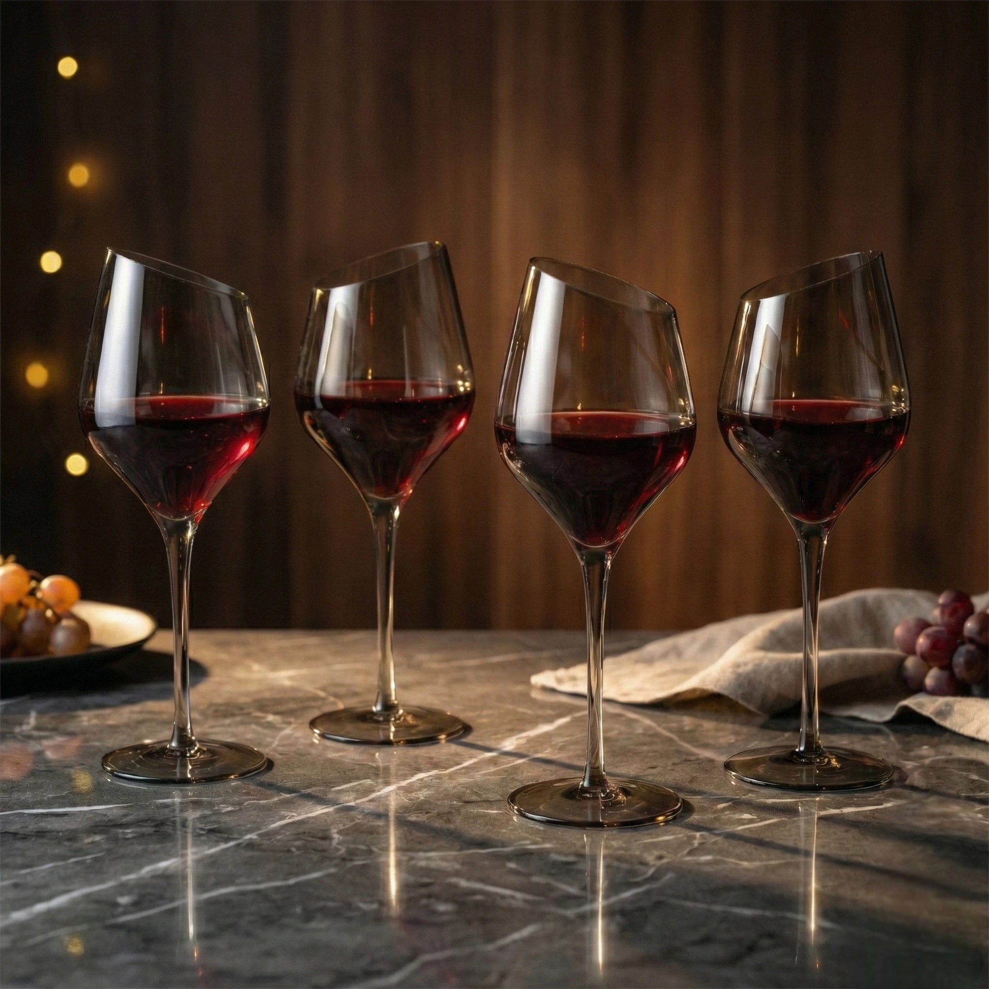Elevate your wine moments with this premium angled wine glass set, crafted for those who appreciate refined design and modern elegance. Made from high-clarity glass, each wine glass features a distinctive tilted rim that adds a contemporary artistic touch while enhancing the overall drinking experience. The asymmetrical silhouette creates visual interest while allowing the wine to aerate naturally, helping aromas open beautifully with every swirl and sip.